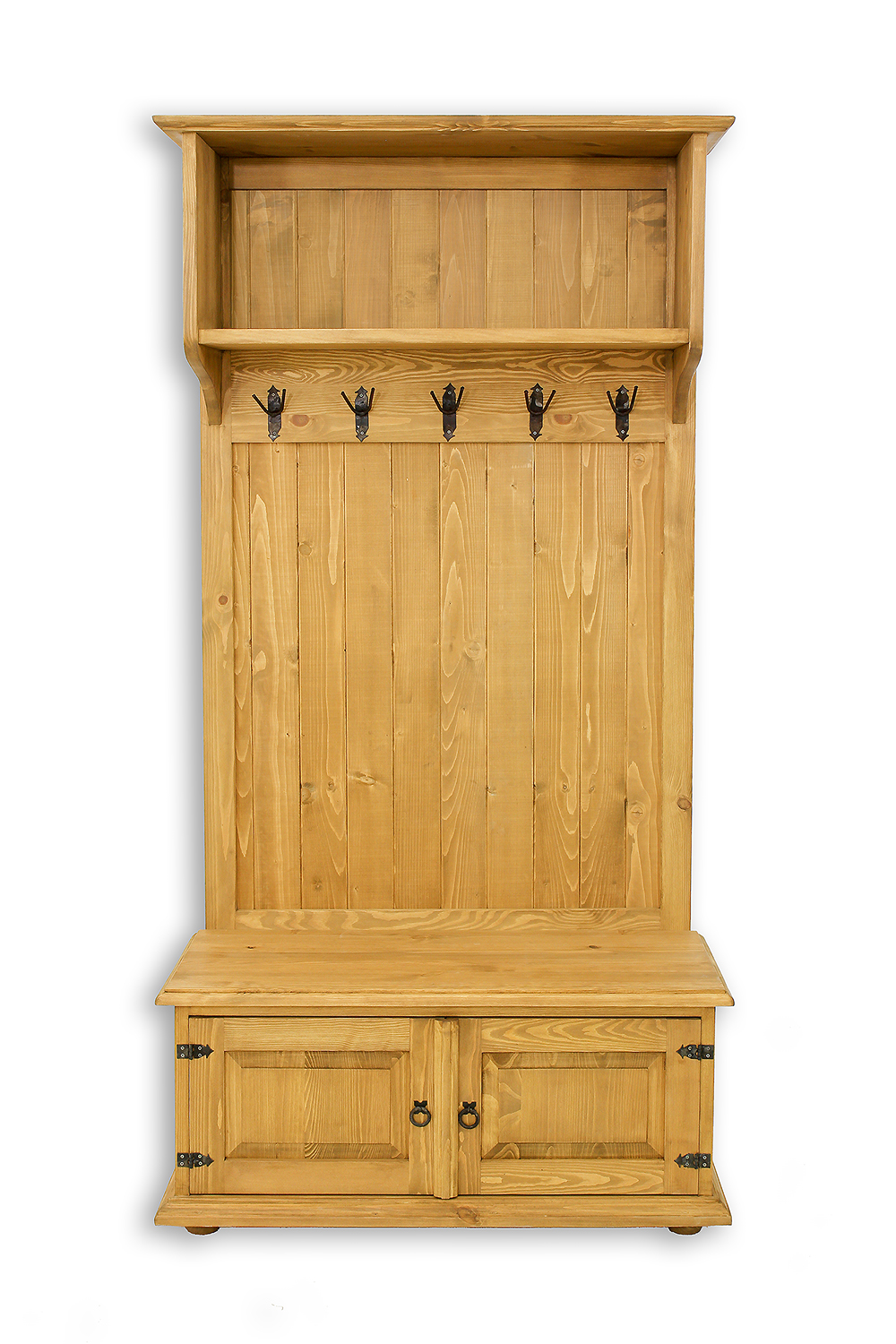 Kvalitní dřevěná věšáková stěna do předsíně je vyrobena z masivního borovicového dřeva v šetrné přírodní úpravě. Originální vzhled s kovanými doplňky oživí každý interiér a dodá mu osobitý styl.