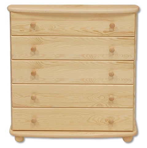 Kvalitní dřevěná komoda je vyrobena z borovicového masivu. Tato komoda nabízí k ukládání pět zásuvek (šuplíků). Hrany půdy a dna jsou zaoblené. Doporučujeme připevnění ke stěně.