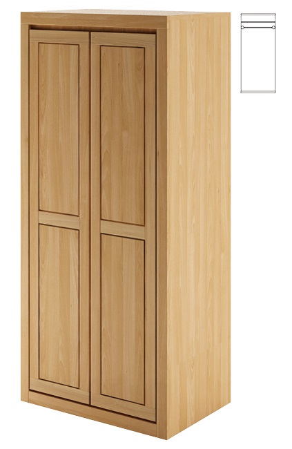 Kvalitní dřevěná skříň je vyrobena z dubového masivu s čistým a nadčasovým designem. Tento typ nabízí k ukládání jednu polici a šatní tyč. Nákres rozložení skříně je vidět v obrázku u hlavní fotografie.